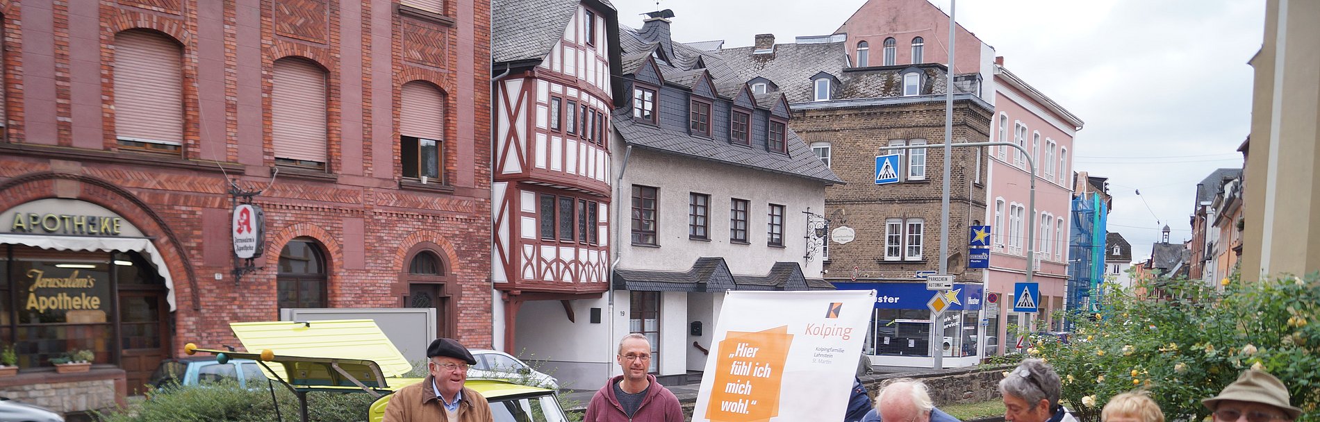 „Blumen für die Damen“ hieß ein Chanson in den 1960er Jahren. Nicht nur für die Damen, sondern für jedes Mitglied der Kolpingfamilie Lahnstein, St. Martin gab es an einem bedeckten und regnerischen Samstagvormittag unter freiem Himmel ein kleines Blumenpräsent. Das Geschenk „to go“ wurde unter Einhaltung der Corona-Hygiene-Schutzregeln von Vorstandsmitgliedern ausgeteilt. Viele kamen vor die St. Martinskirche im Stadtteil Oberlahnstein, wo der „Treffpunkt orange schwarz“ stattfand. Wer wollte, konnte auch frischen Kaffee, Espresso oder Cappuccino trinken, verabreicht aus der „Ansprechbar“, einer Ape, dem dreirädrigen Rollermobil des italienischen Herstellers Piaggio, welches zum Bestand der Pfarrgemeinde Sankt Martin gehört.