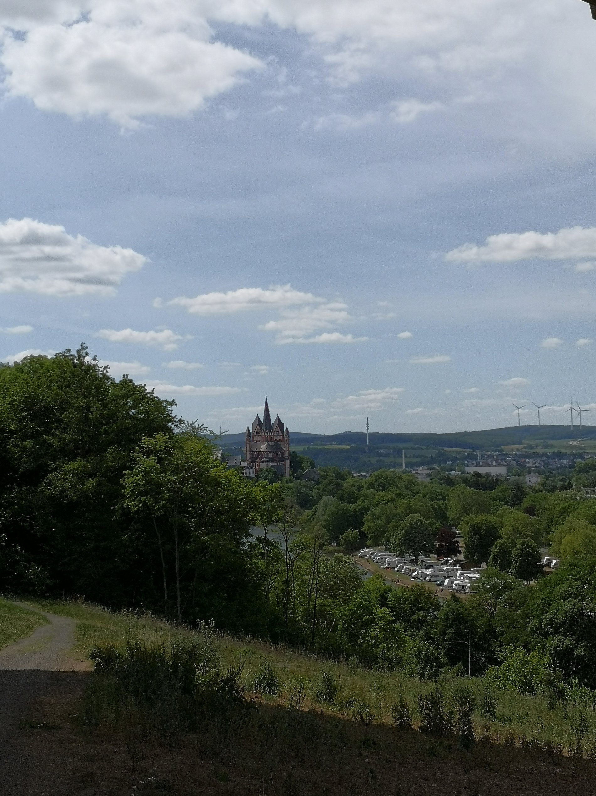 Nach einer verregneten Pause und einem Mittagssnack ging es weiter zur Kirche St. Lubentius, in der wir einen kleinen Moment des stillen Gebetes einlegten. Von dort pilgerten wir durch Feld und Flur zu unserem vorletzten Impuls. Von diesem Impuls aus sind wir schweigend weitergelaufen und unseren eigenen Gedanken nachgegangen, bis wir den Limburger Dom sahen. In Limburg angekommen kamen wir auf unserem Weg zum Dom noch am Kolpinghaus vorbei. Im Dom hielten wir alle ein stilles Abschiedsgebet und bedankten uns für einen so schönen Tag. Obwohl die Hygienemaßnahmen wegen des Coronavirus uns ein wenig einschränkten, war es ein toller Tag und eine bereichernde Erfahrung. Mit einem Eis in der Hand machten wir uns alle dann schweren Herzens auf den Weg nach Hause und in den Alltag zurück.