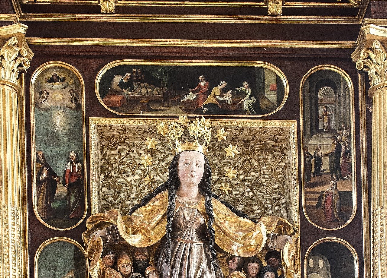 Maria breit den Mantel aus