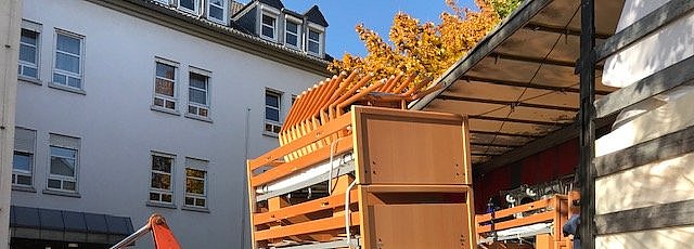 (bs) Nach vier Stunden war der im Drei-Schicht-Betrieb auf den Zentimeter genau im Hof eingeparkte 18 Meter lange Sattelschlepper vollständig beladen. Dann galt es, zum Abschluss und zur Sicherheit noch eine Plombe an die Hecktür des LKWs anzubringen. Dazu ein Lunchpaket für den Fahrer, der wegen der Covid-19-Ansteckungsgefahr nicht mithelfen durfte. Anschließend startete der Sattelschlepper zu der ca. 1.400 km langen Tour nach Satu Mare in Rumänien. Natürlich folgten noch ein freundschaftliches „La revedere” (Auf Wiedersehen) und „Drum Bun” (Gute Fahrt). Das in den Vorjahren nach getaner Arbeit übliche Zusammensitzen bei Bier und Würstchen kam pandemiebedingt leider wieder viel zu kurz.