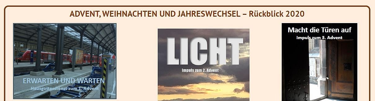 Von Warten, Erwartung, offenen Türen und Ankommen – nur einige der Themen, zu denen Mitglieder unseres Fachausschusses "Kirche mitgestalten" und unserer AG Schöpfungsverantwortung in der Advents- und Weihnachtszeit sowie zum Jahreswechsel Impulse und Andachten veröffentlicht haben. Wo Corona zur Kontaktvermeidung zwingt, bekommt persönliches Innehalten zuhause eine ganz neue Bedeutung – ob alleine oder mit anderen Haushaltsmitgliedern.