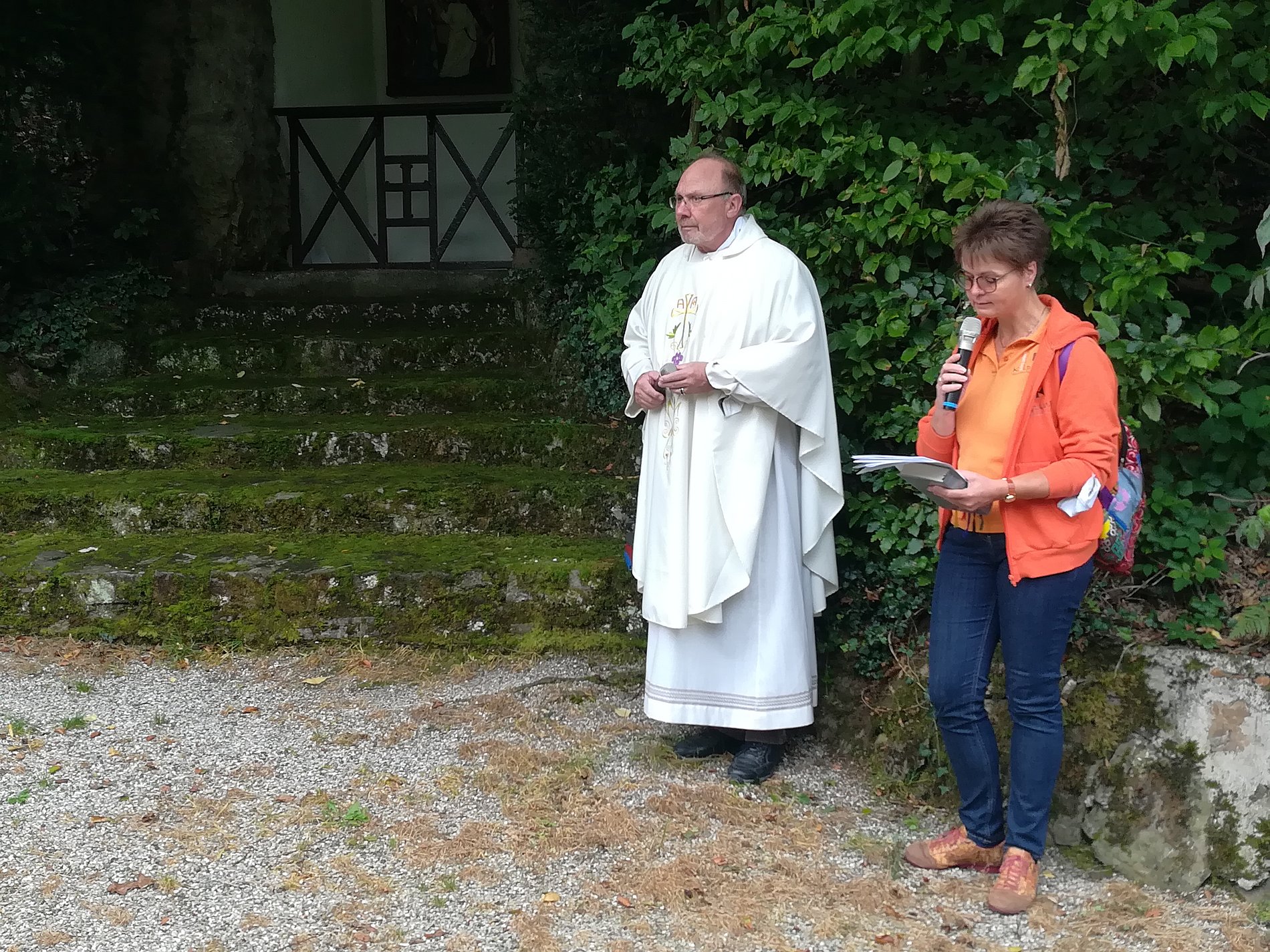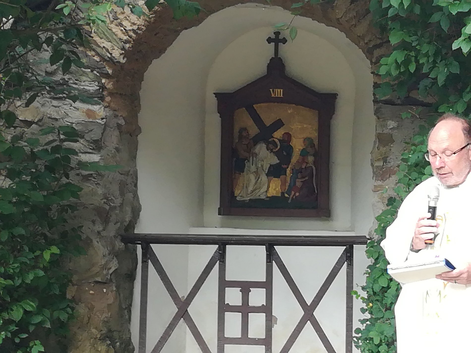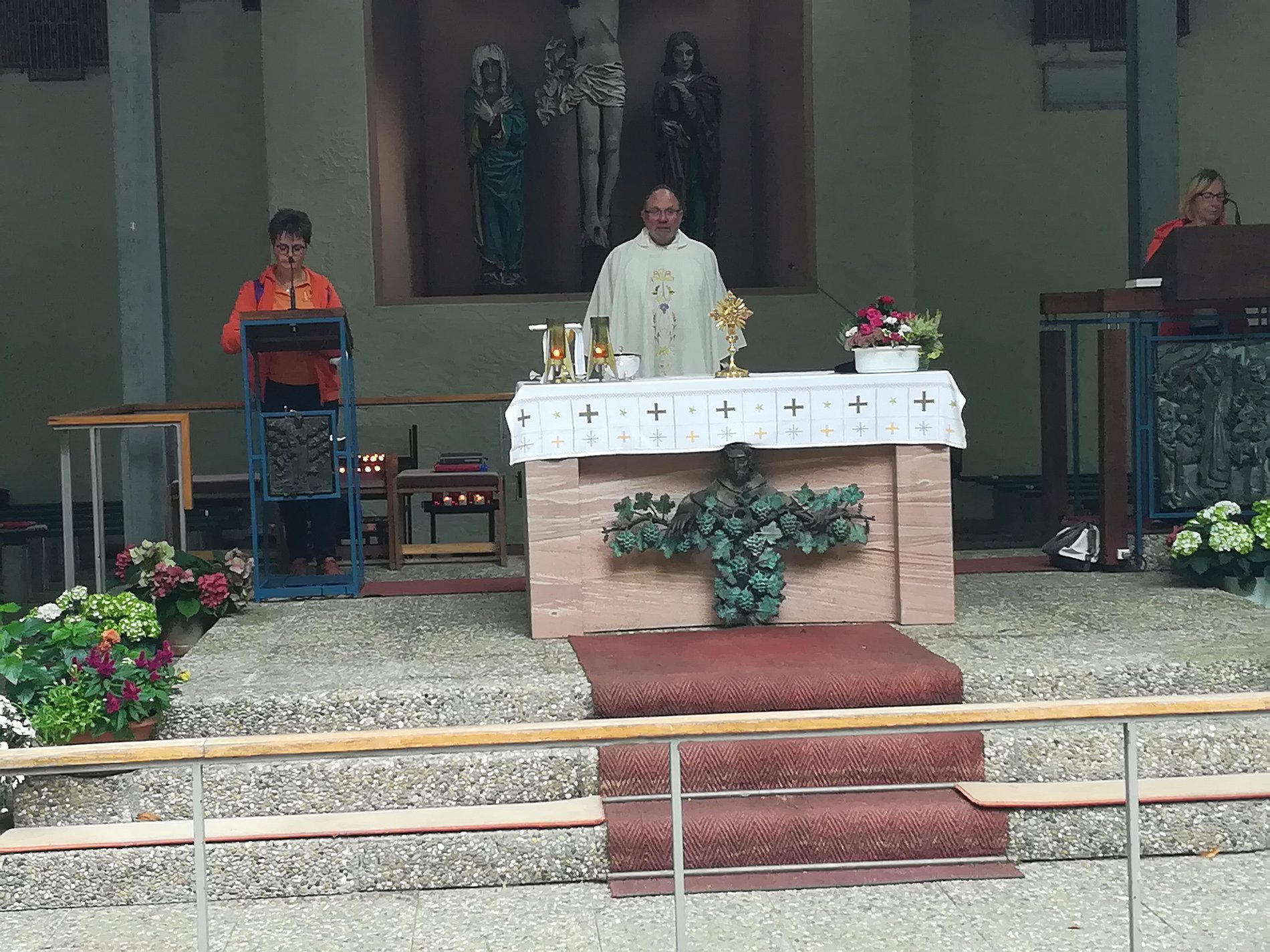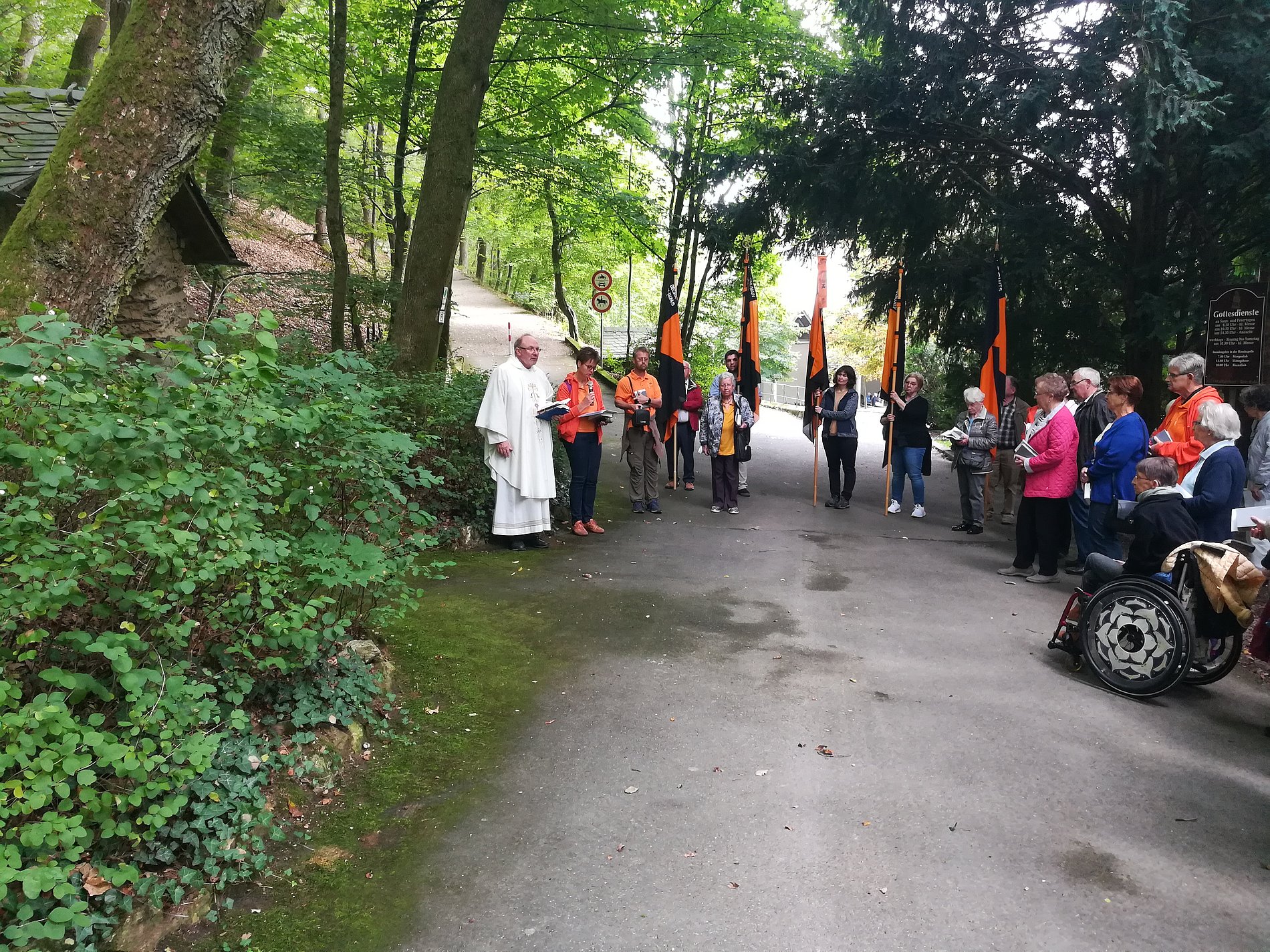 Rund 40 Kolpingmitglieder aus dem Bezirk Main-Taunus haben sich am 18.09.2021 im Wallfahrtsort Marienthal bei ihrer jährlichen Bezirkswallfahrt diesen Aussagen genähert. Christian Preis, Bezirkspräses, und Stefanie Kohl, geistliche Begleiterin im Bezirk, gewährten den Teilnehmenden einen Einblick in die möglichen Gefühle von Maria und Jesus auf seinem letzten Weg zum Kreuz.