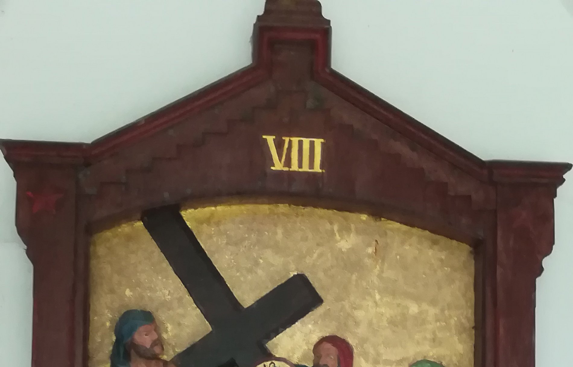 An der 8. Station wurden die Gedanken Jesus zu seinen zahlreichen Begegnungen mit Frauen und wie sie ihn geprägt haben vorgestellt. Jesus hat durch sie die damals geltende Ordnung auf den Kopf gestellt.