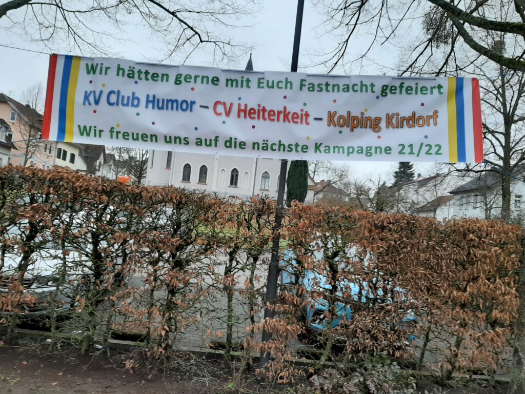 Stimmungsvolle Sitzungen, fröhliche Umzüge und närrische Feiern im privaten Kreis – all das gibt es in diesem Jahr auch in Kirdorf leider nicht. Trotzdem hatte im Januar die Kolpingfamilie zusammen mit den anderen beiden karnevalstreibenden Vereinen KV Club Humor und CV Heiterkeit den Platz am Kirdorfer Brunnen mit einem Banner und neuen Fahnen geschmückt, um die närrische Zeit sichtbar zu machen.