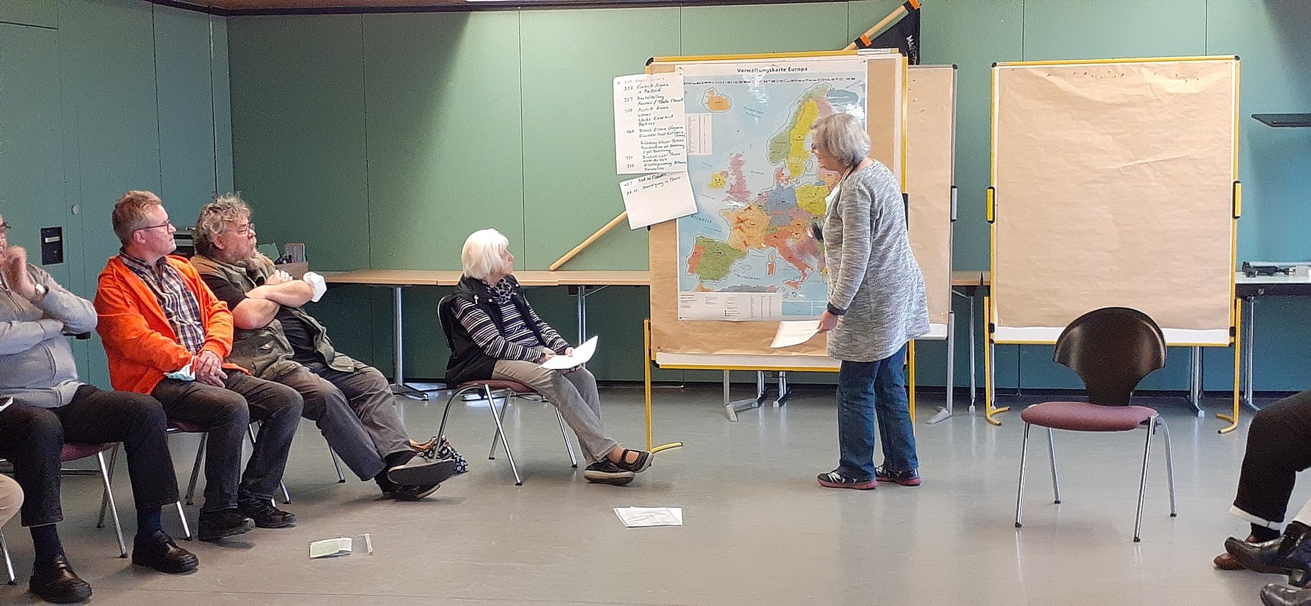 Wir kenne alle die Legenden um St. Martin und Bräuche wie Martinsgans, Martinsweck, Martinsfeuer, Martinsumzüge mit Martinslaternen und Mantelteilung. Doch was ist noch von diesem Mann überliefert? Wo sind seine Wurzeln? Wie war sein beruflicher Werdegang? Was wollte er eigentlich selber für sich in seinem Leben? Diesen Fragen sind die Teilnehmenden des Bezirkswochenendes des Bezirksverbands Kolpingwerk Main-Taunus nachgegangen. Ein Gruppe näherte sich St. Martin über seine Zeit beim römischen Militär. Eine weitere Gruppe widmete sich seiner kirchlichen Laufbahn. Während die dritte Gruppe sich mit dem Gerechtigkeitsdenken Martins und der gerechten Verurteilung von Straftätern auseinander setzte. Schließlich wurden die zahlreichen Reisen und Lebensstationen von Martin herausgearbeitet und auf einer Europa-Karte dargestellt. Fazit aller Gruppen ist, dass Martin weit mehr in seiner Zeit zu sagen hatte als uns der Volksmund überliefert hat. Er kritisierte die damalige Kirche genauso wie die damalige Gerichtsbarkeit und den Umgang mit seinen Mitmenschen. Er wollte gerne als Eremit und ganz auf Gott ausgerichtet leben. Doch genau diese Lebenshaltung führte dazu, dass er damals viele Menschen mit seiner Lebens- und Glaubensweise ansprach und hat dazu geführt, dass er vom Volk - gegen die Bischöfe - zum Bischof gewählt wurde. Zum Abschluss des Wochenendes wurde im Kolpingferiendorf Herbstein zusammen mit der Musikgruppe Eisteich Saiten ein zum Thema passender Wortgottesdienst gefeiert. Alle Teilnehmenden bestätigten, dass dies ein sehr intensives Wochenende war das sie sehr genossen haben und viel neues interessantes Wissen über St. Martin mit nach Hause nehmen.