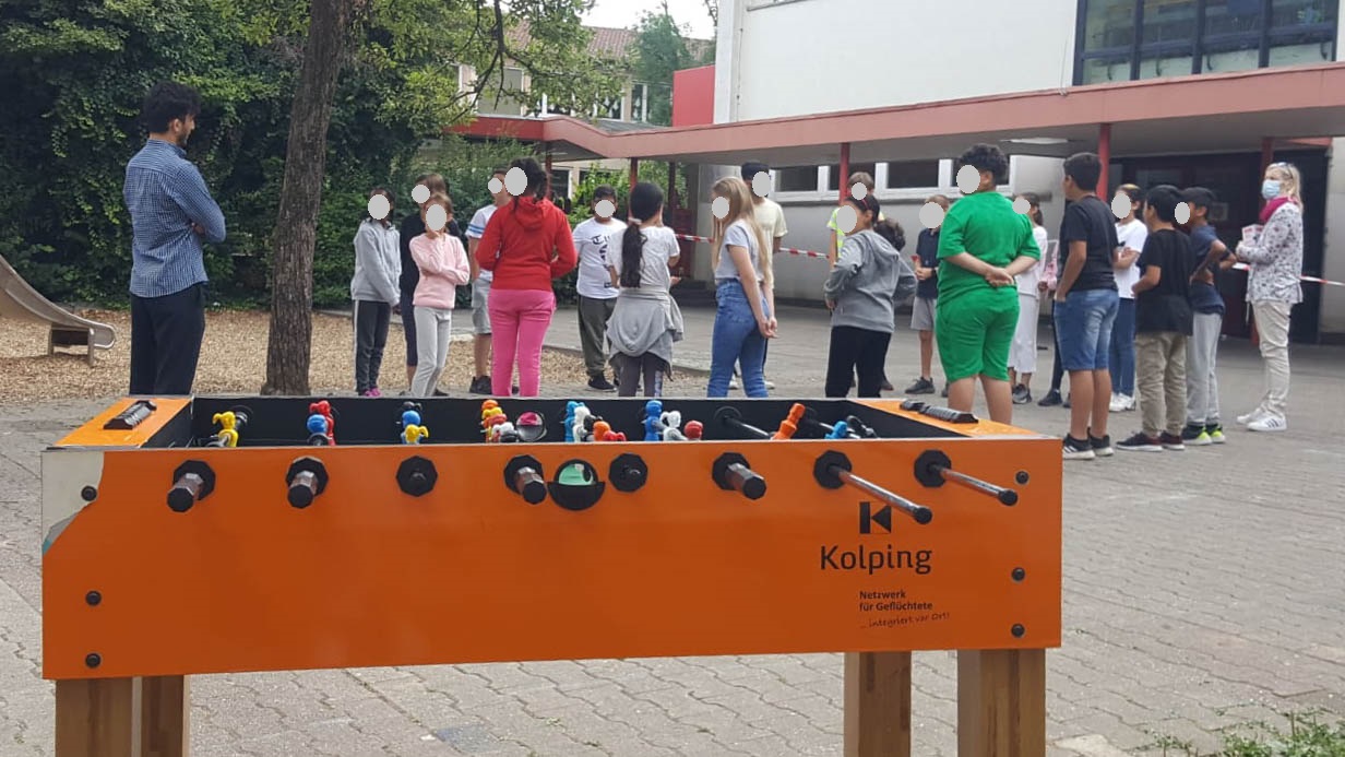 Das Kolping Infomobil ist unter der Schirmherrschaft des Kolping Netzwerks für Geflüchtete finanziert aus Mitteln der Europäischen Union seit Jahren in ganz Deutschland unterwegs. Der 3,5-Tonner ist mit einer überdachten Infoplattform mit Monitoren für Videos und ausklappbaren Ausstellungsflügeln und Sitzflächen ausgestattet. Zwei geschulte Begleiter, die muslimischen Studenten Ahmadullah und Mohamed, gestalten altersgerechte Kurzschulungen über Fragen der Integration Geflüchteter und laden zum Gespräch ein.