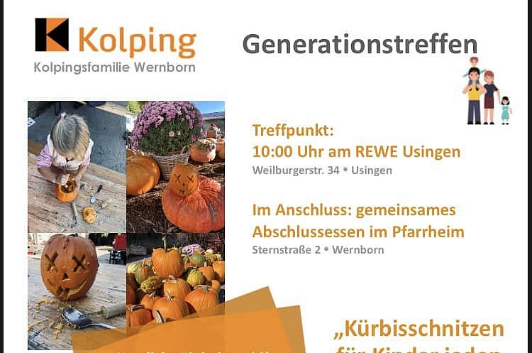 Am 29. Oktober bieten wir Kürbisschnitzen für Kinder jeden Alters am REWE in Usingen an. Wer sich anmelden möchte, schreibt bitte eine E-Mail an michelle_heider@gmx.de