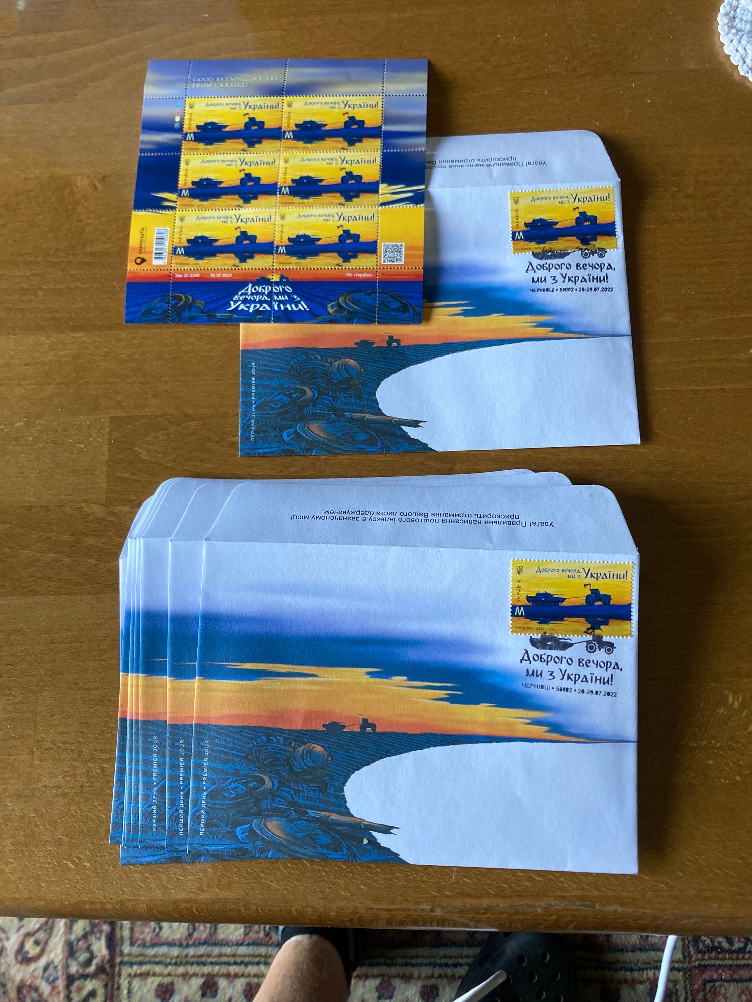 Mir wurden von einem ukrainischen General 50 Briefmarken mit der Abbildung, wie ein ukrainischer Traktor einen russischen Panzer abschleppt, geschenkt. Diese Briefmarken sind unter Sammlern sehr begehrt. Die Vorgängermarke wird bereits für 50$ gehandelt. Gegen eine Spende gebe ich gern diese Briefmarken ab.