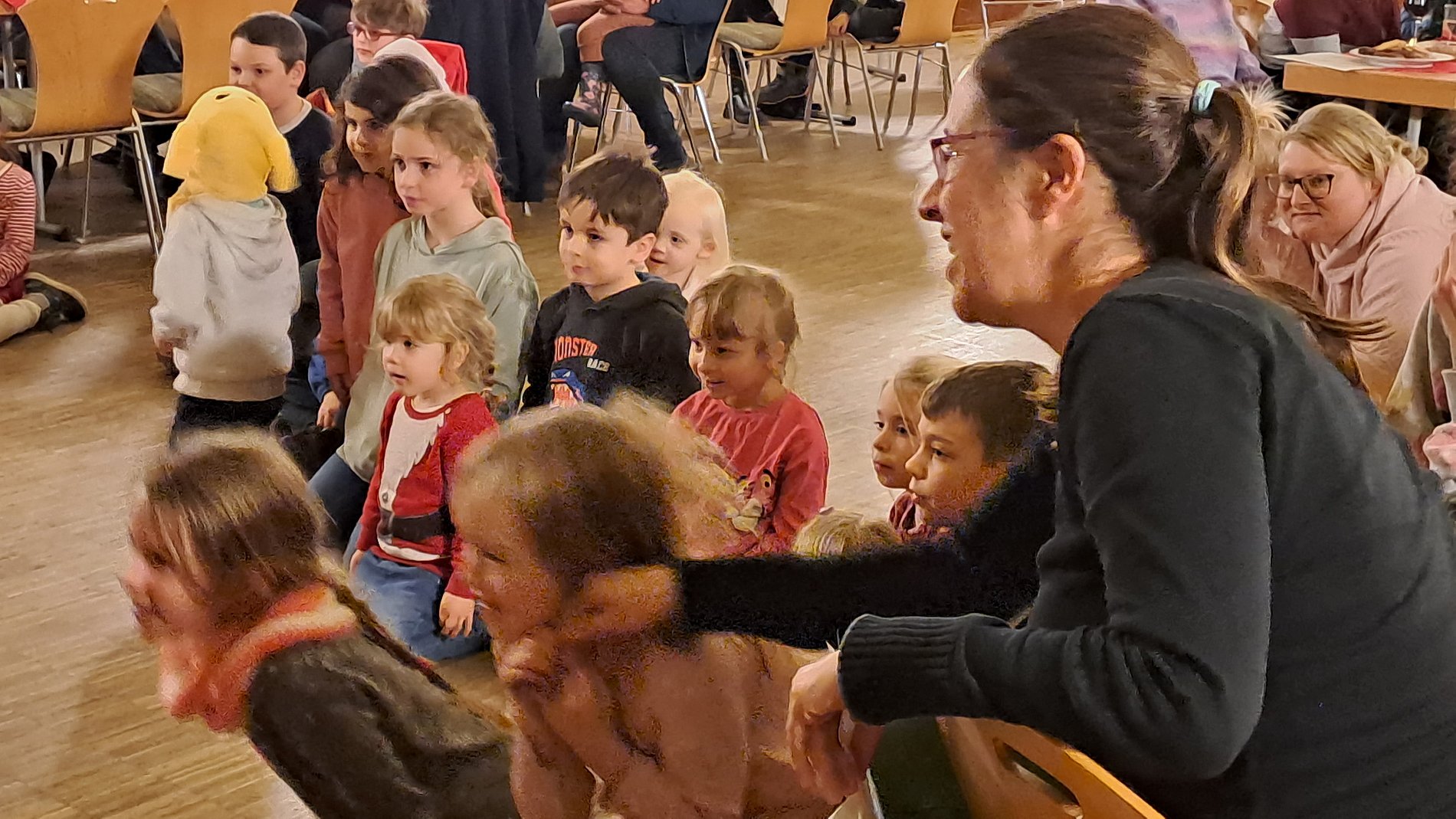 Den zahlreichen Kindern, Eltern und Großeltern, die im Vereinshaus erschienen waren, erklärten die beiden den Unterschied zwischen dem Bischof und dem Weihnachtsmann. Und natürlich durften sich alle Kinder auch einen (fair gehandelten) Schoko-Nikalus abholen, wahlweise beim echten Nikolaus oder beim Weihnachtsmann. Ein gelungener Abend für Klein und Groß, im gemütlichen Besammensein und gemeinsamen Singen von adventlichen Liedern, bei dem die letzten noch lange nicht nach Hause kamen.