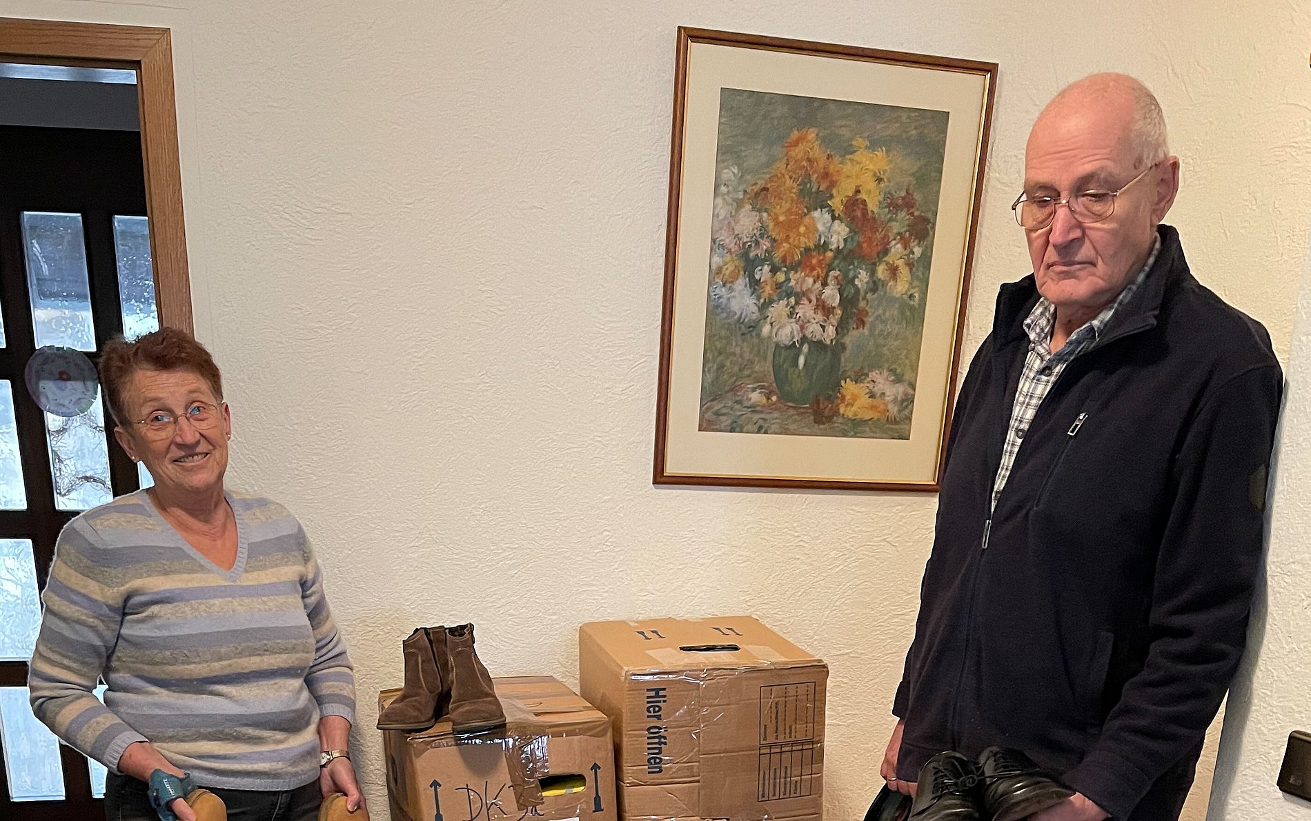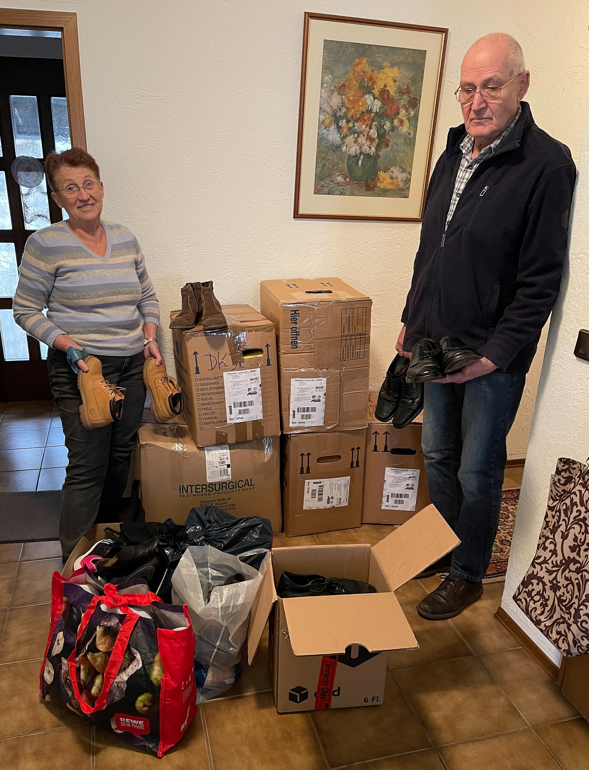 Oberursel (14. Februar 2022).- 4.455 Paar Schuhe im Gesamtgewicht von 2.725 Kilogramm hat die Kolpingsfamilie Oberursel für gute Zwecke gesammelt. Unter dem Motto „Mein Schuh tut gut!“ wurden sie von Anfang Dezember bis in die ersten Februartage bei Alfons Happel und Lilo Netz in der St. Ursula-Gasse abgegeben und in 154 Umzugskisten per Post an eine zentrale Sammelstelle verschickt. Der Erlös kommt der Gemeinschaftsstiftung des Kolpingwerks Deutschland zugute, die ihn für Projekte für junge Menschen, für die Arbeitswelt, Familie und die Eine Welt verwendet.