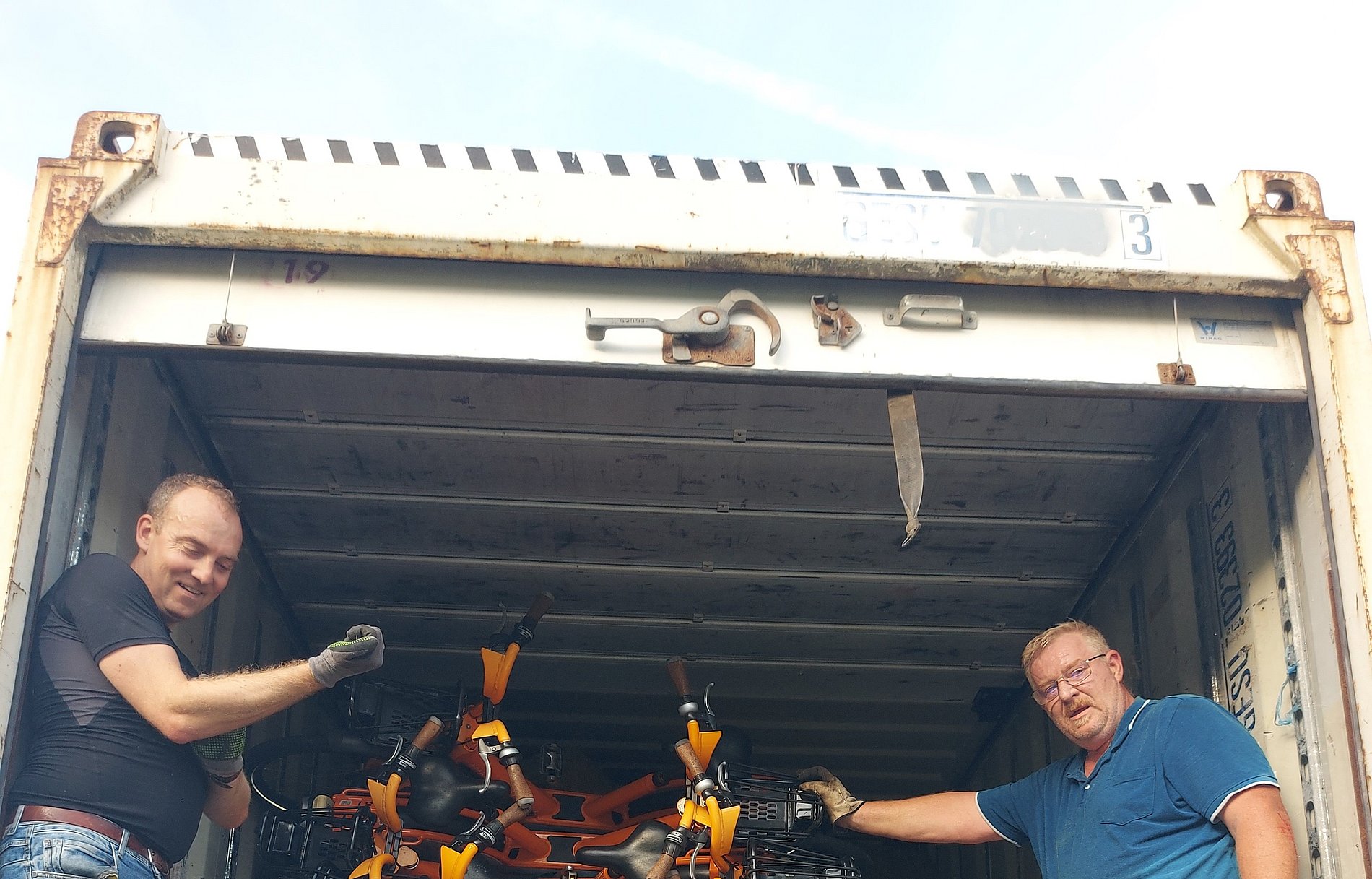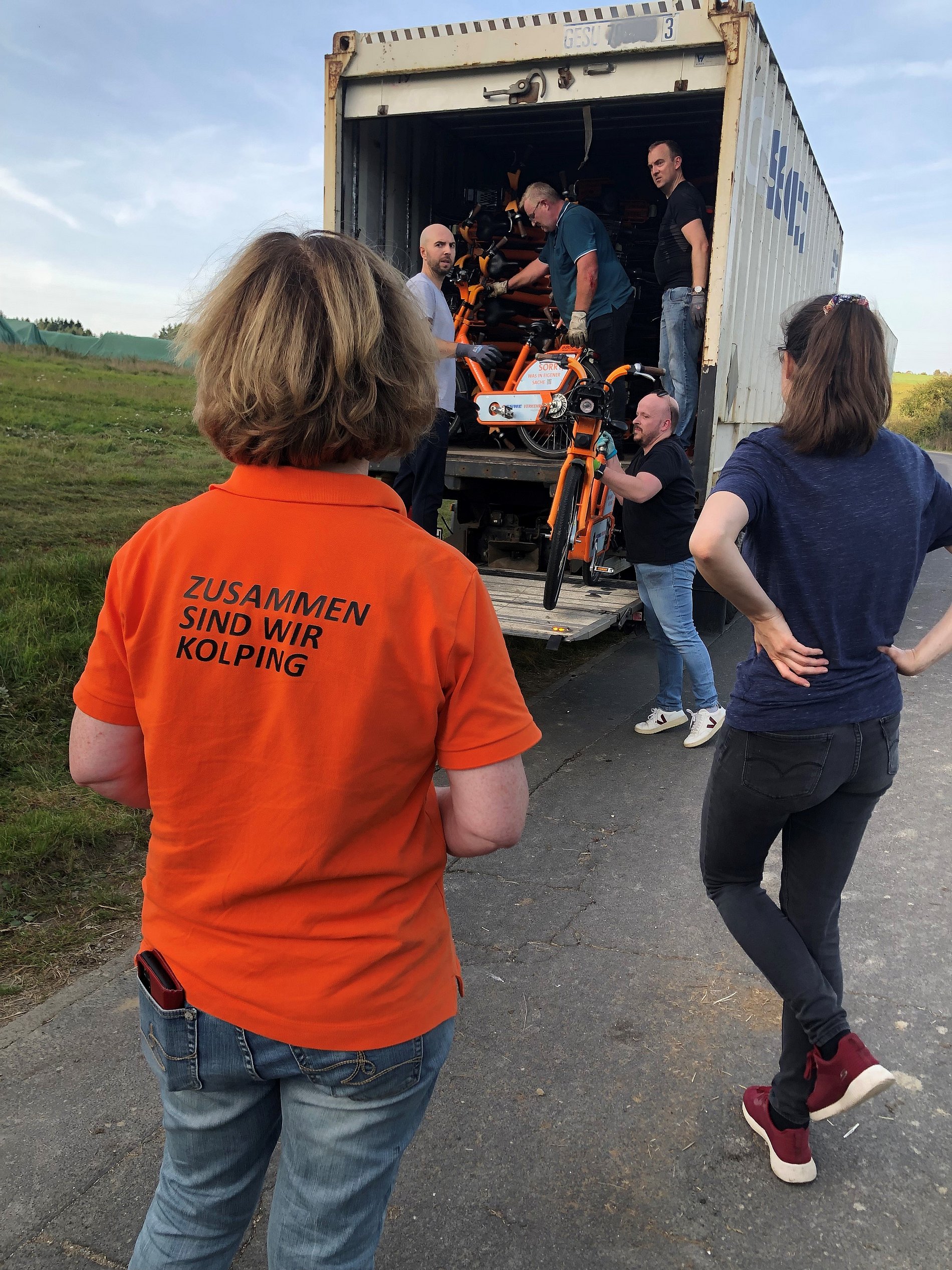 Kolpingwerk Limburg transportiert 470 orange Fahrräder an Partnerorganisationen in Rumänien