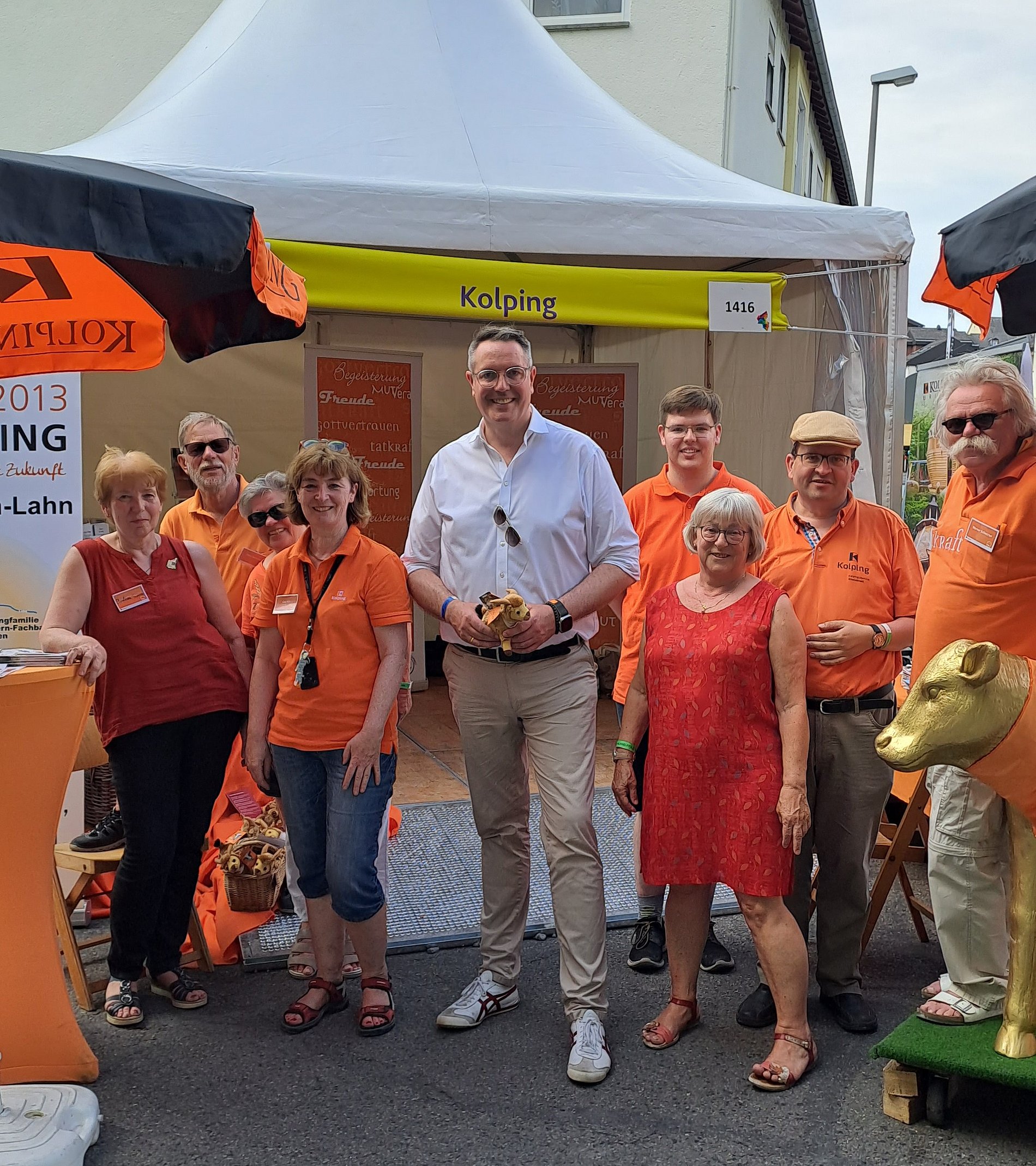 Viele engagierte Kolpinggeschwister aus dem Bezirk Rhein-Lahn und vom Diözesanverband haben dafür gesorgt, dass Kolping drei Tage lang vom 16.-18. Juni 2023 beim großen Landesfest in der Kurstadt Bad Ems Flagge zeigen konnte.