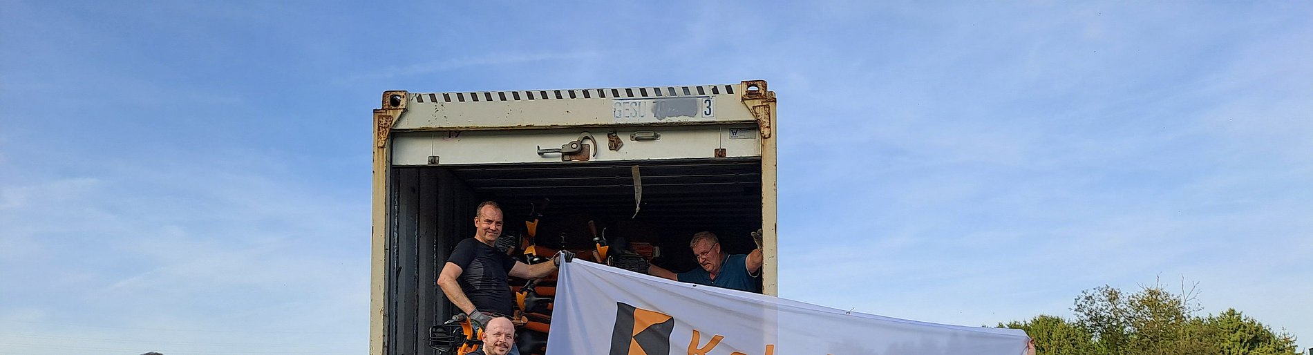 helfende Hände zur Verladung von 200 Fahrrädern in
