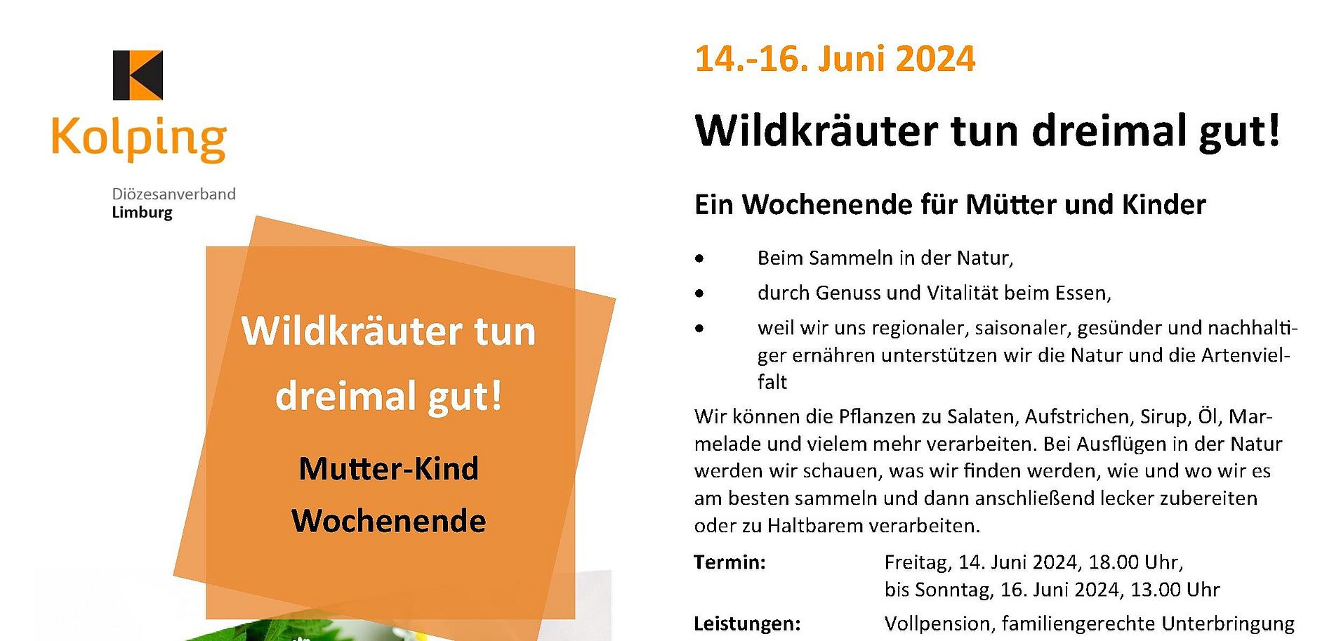 Termin: Freitag, 14. Juni 2024, 18.00 Uhr, bis Sonntag, 16. Juni 2024, 13.00 Uhr