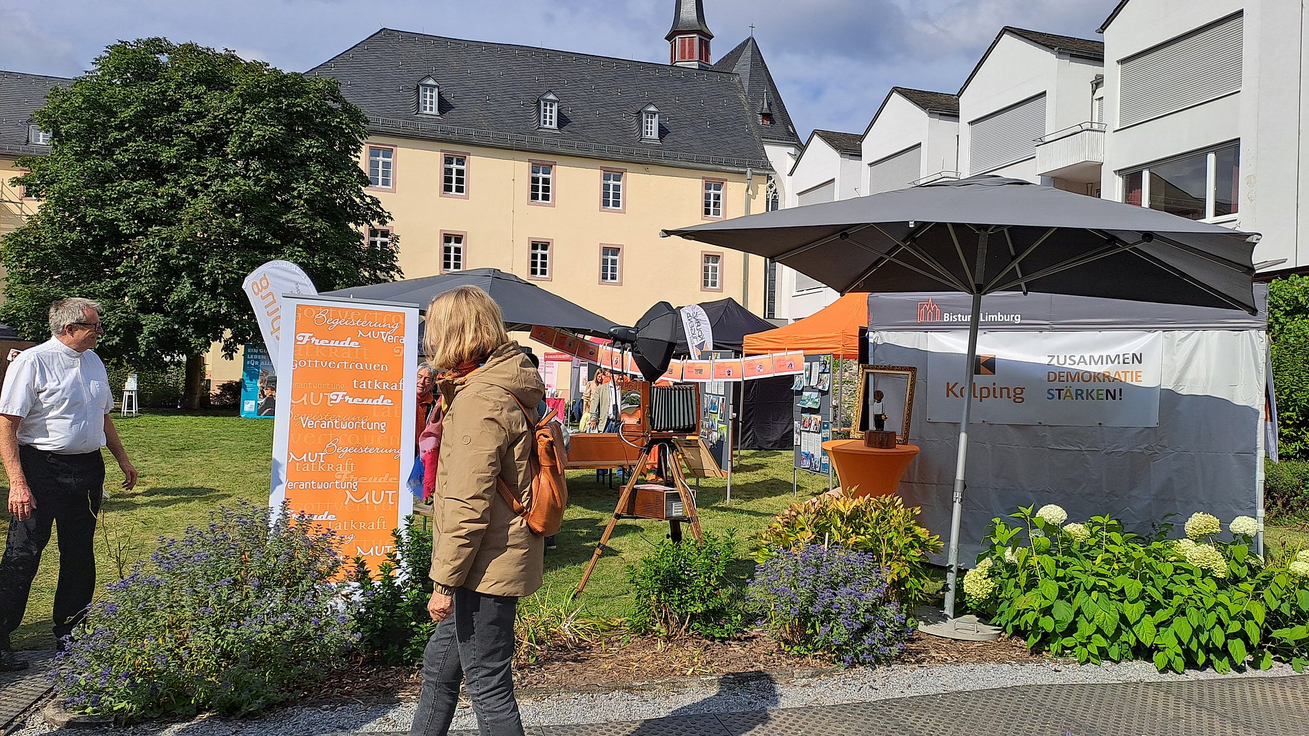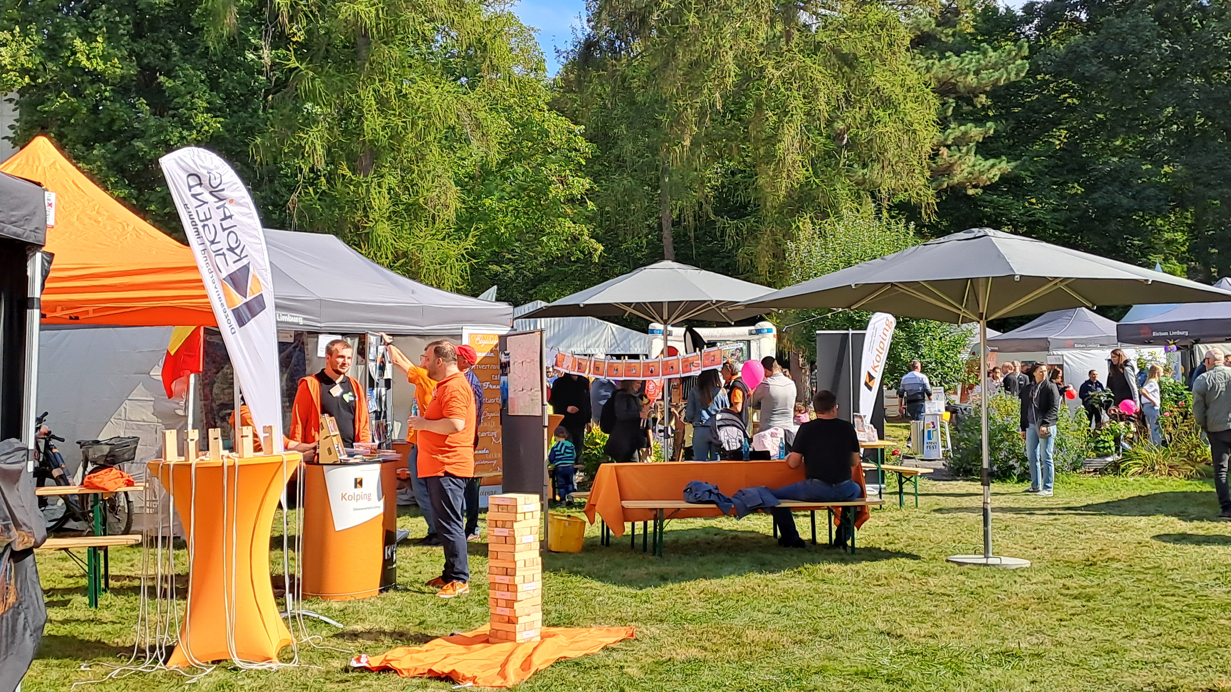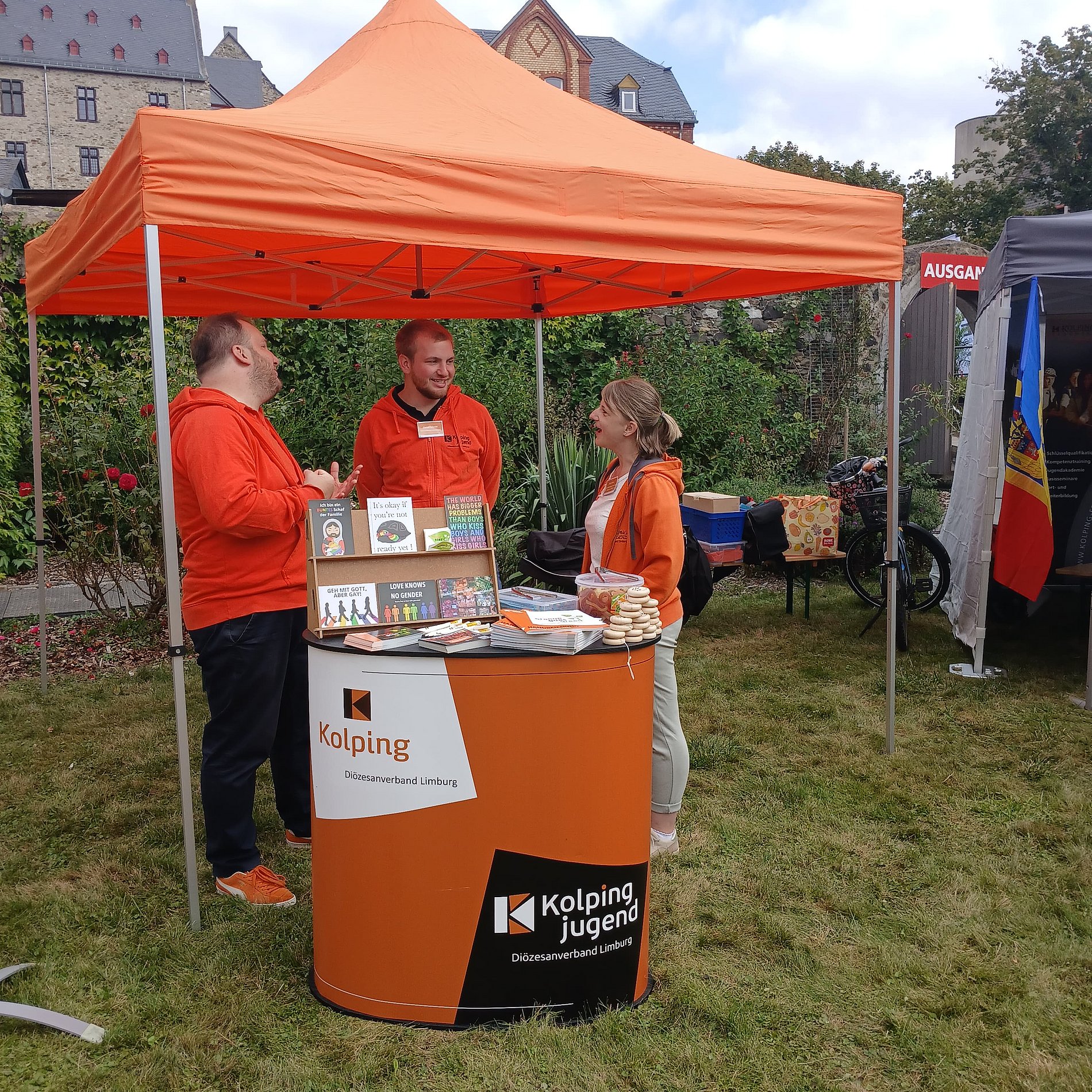 Eine Meditation gemeinsam mit der kfd stellte bereits am Samstag in der Stadtkirche die königliche Würde jeder Person in den Mittelpunkt. Der Familien-Sonntag im Bischofsgarten war geprägt von den Präsentationen und Aktionen unseres Verbands und einem Interview zur "Demokratieförderung in der Jugendsozialarbeit" mit Hendrik Beer (Kolping Jugendwohnen Franktfurt) und unserem stellvertretenden Diözesanvorsitzenden Hermann-Josef Bode im Rahmen einer Interview-Reihe der AG Verbände.