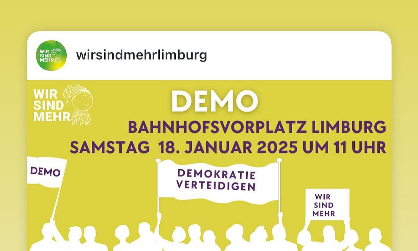Dies wollen wir auch gemeinsam als Verbände im Bistum machen und uns deshalb an der Demokratie-Demonstration am 18.01.2025, ab 11 Uhr in Limburg mit möglichst vielen (Jugend)Verbandler*innen beteiligen. Den entsprechenden Aufruf zur Demonstration findet ihr auch auf bdkj-limburg.de