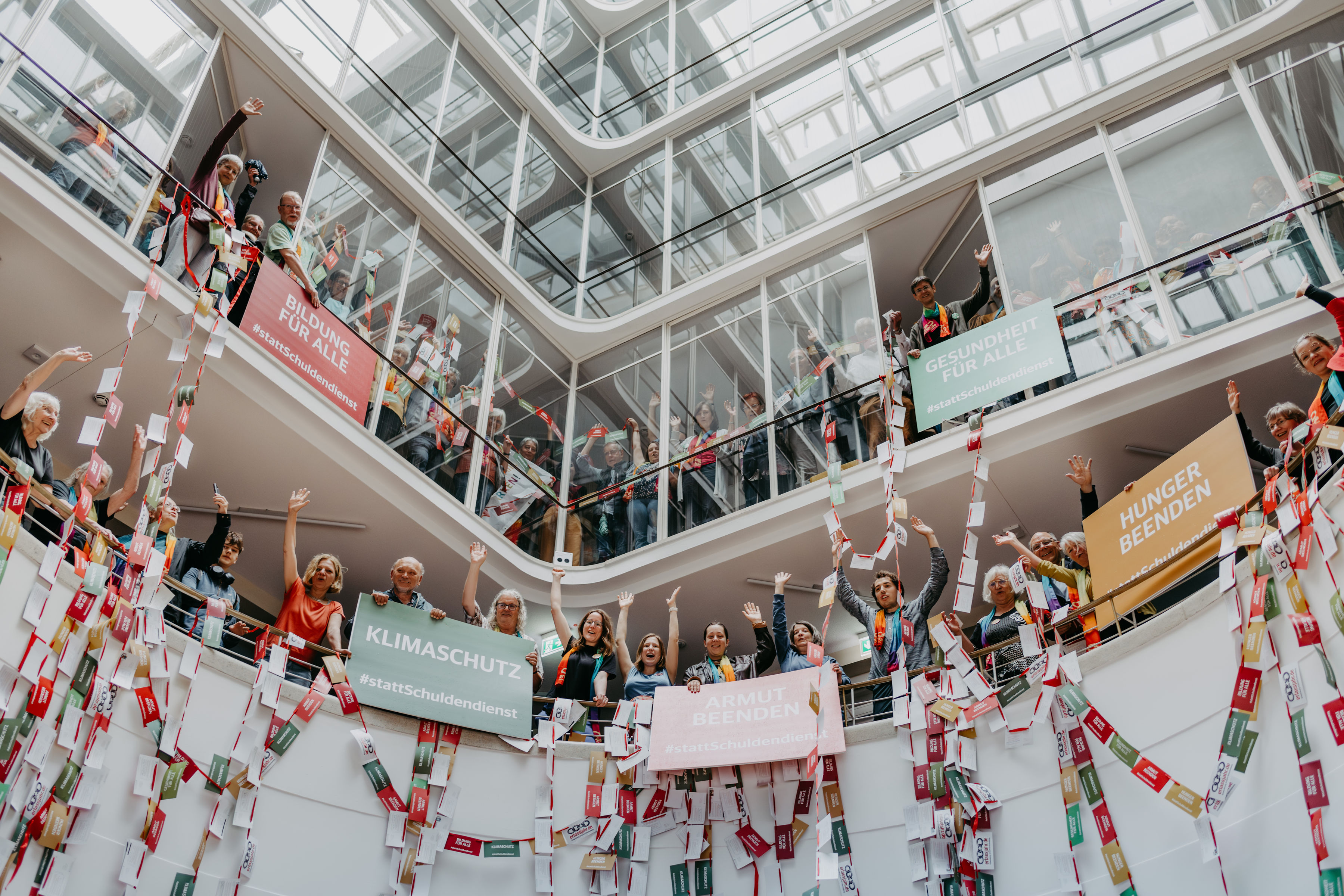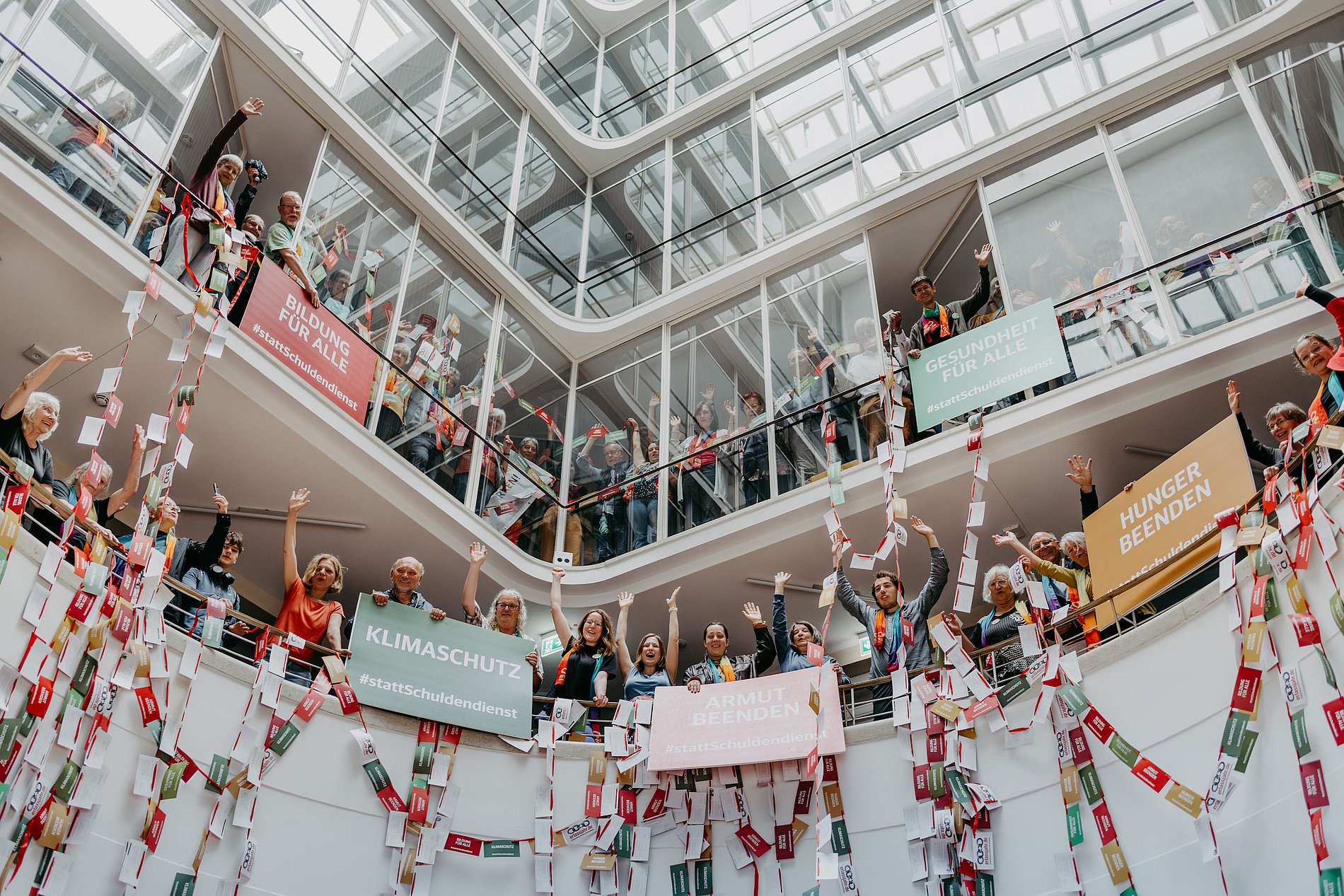 Im Juni 1999 bildeten rund 35.000 Menschen anlässlich des G8-Gipfels eine Menschenkette rund um die Kölner Innenstadt. Sie forderten die Streichung der Schulden der Länder im Globalen Süden. Mit Erfolg! Doch der damalige Schuldenerlass ging nicht mit nachhaltigen Reformen einher. Heute ist der Einsatz für faire Entschuldung angesichts der weltweiten Schuldenkrise dringender denn je.